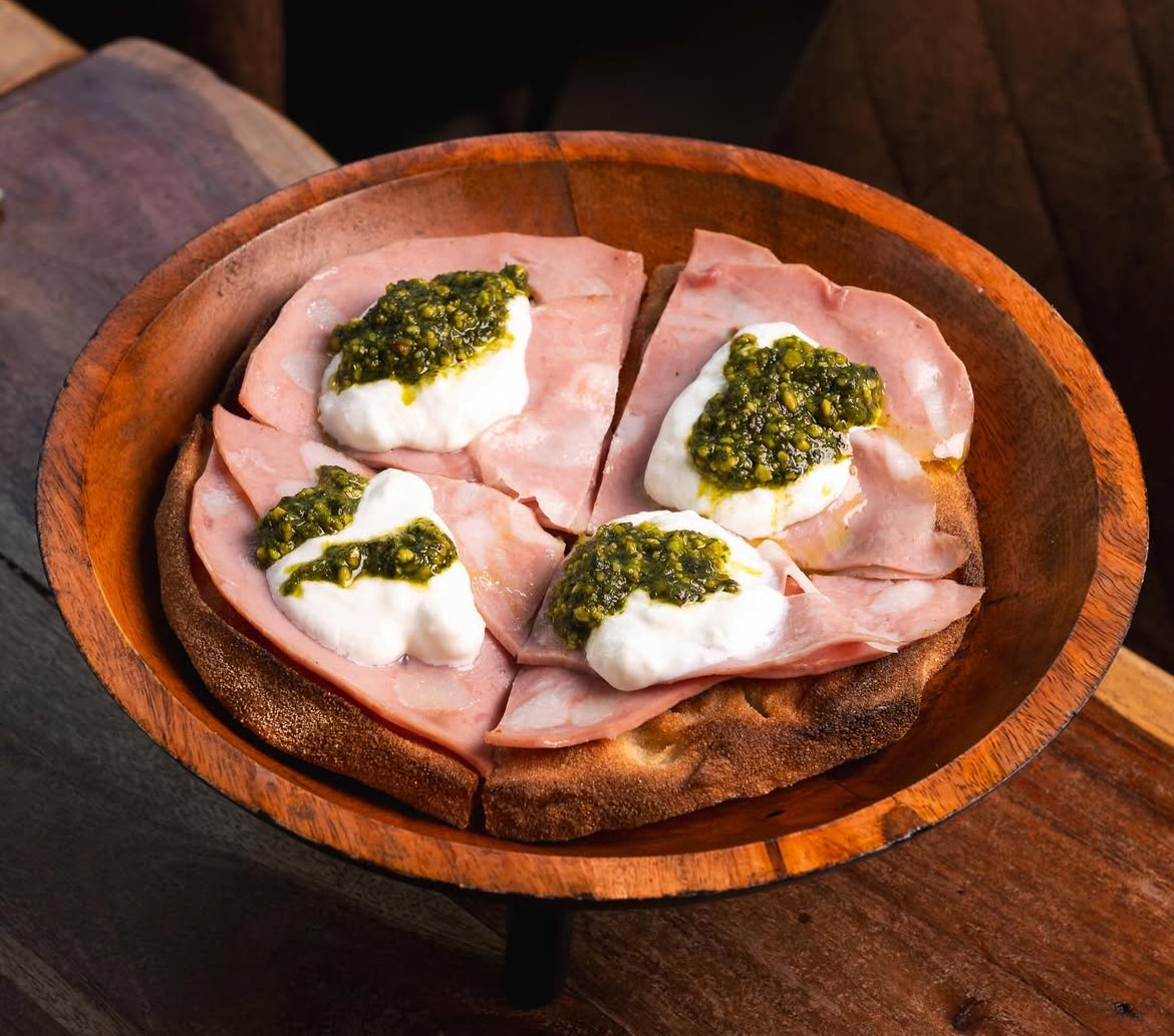 MORTADELLA, STRACCIATELLA E PESTO DI PISTACCHIO
